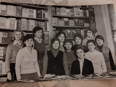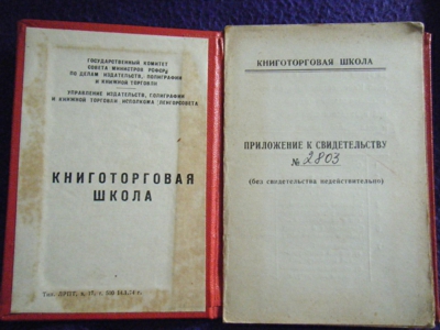 В «Доме книги» было распределение работников по отделам. Был, например, отдел художественной литературы, в котором работало около двух десятков сотрудников. Он в свою очередь делился на подотделы фантастики, поэзии, литературы на иностранных языках и другие – в каждом отделе по 2-3 продавца. Как правило, продавец все время работал в одном и том же отделе и превосходно разбирался в книгах по своей тематике. Причем изначально эти работники не были просто продавцами общего профиля - они заканчивали специальную книготорговую школу и были уже подготовленными специалистами в своей сфере. Причем это была достаточно редкая специальность В Ленинграде была одна книготорговая школа, которая выпускала продавцов книжных товаров (а Большом проспекте Петроградской стороны), и книготорговое отделение в Институте культуры им. Крупской. Будущие продавцы изучали общеобразовательные дисциплины, а также общую организацию торговли, книжный ассортимент, подробную историю литературы, историю издательского дела, бухгалтерское дело и пр. Многие продавцы работали в магазине семьями и проводили в нем всю свою жизнь. Вместе отмечали праздники, общались, дружили. Вот, например, свидетельство об окончании книготорговой школы и подарок одной из работниц.