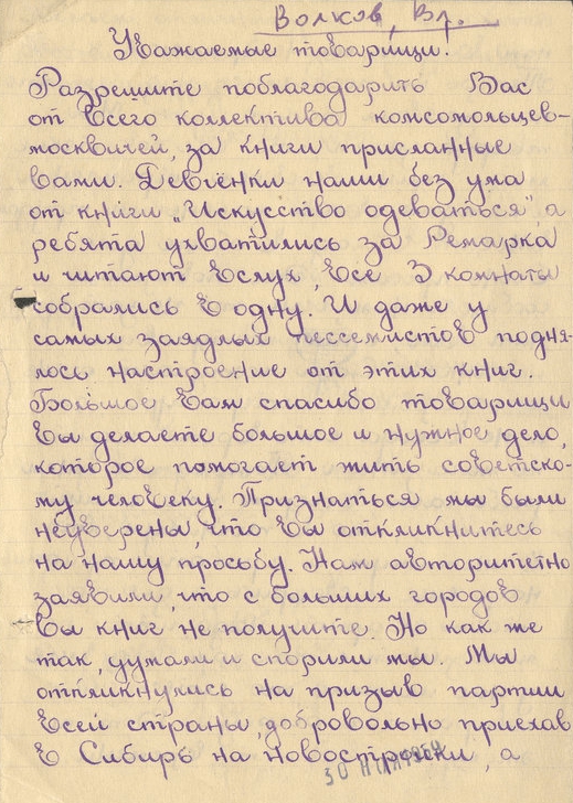 Уже в довоенные годы магазин стал очень популярным. Люди шли сюда, думая, что здесь им ответят на любой сложный вопрос? приходили с самыми разными проблемами и задачами.. Не только покупали книги, но и писали письма с отзывами о прочитанном. (на фотографии можно кликать для увеличения)