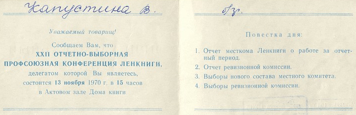 Дикторский текст передачи «Последние известия» Ленинградского радио о книжной торговле в ноябре 1942 г. А вот цитата из дневника простого ленинградца: