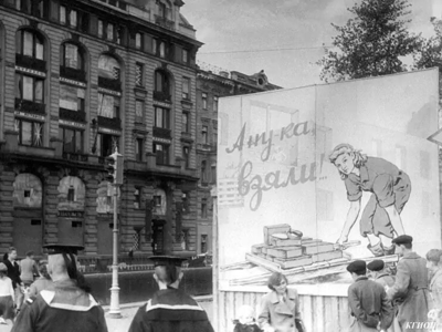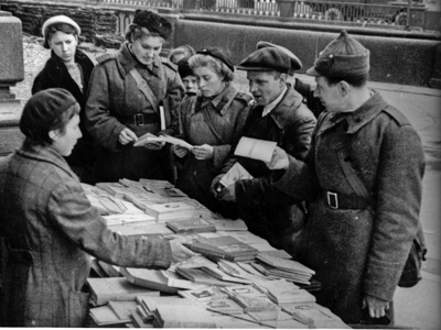 Всю блокаду работали Лавка писателей и самый наш крупный книжный магазин Дом книги. И у его прилавков не было пусто - читатели в ватниках и шинелях перебирали книги, выискивая самую нужную, и уносили покупку как ценность, как хлеб насущный. Книги тоже были оружием, и все это понимали. Речи Всеволода Вишневского, стихи Николая Тихонова, Ольги Берггольц, Веры Инбер и многих других разили врага.