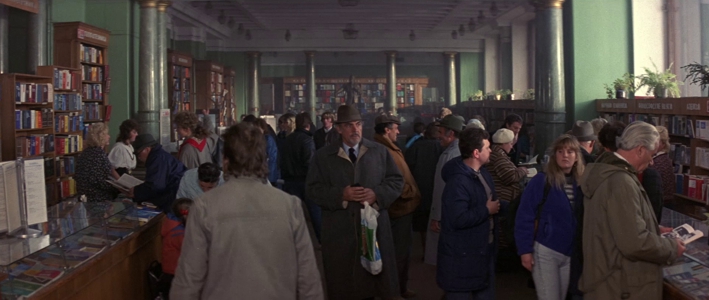 Был в «Доме книги» и другой неожиданный посетитель – здесь в 1990 году в фильме «Русский дом» снимался Шон Коннери в роли английского книгоиздателя. Одну сцену из фильма снимали в торговом зале на первом этаже. Другую - на территории одной из редакций, которые находились на верхних этажах. На кадре из фильма видно, что памятник Ленину в то время еще стоял на своем месте.