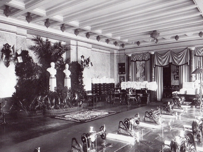 Интерьеры здания в первые годы и в наши дни.